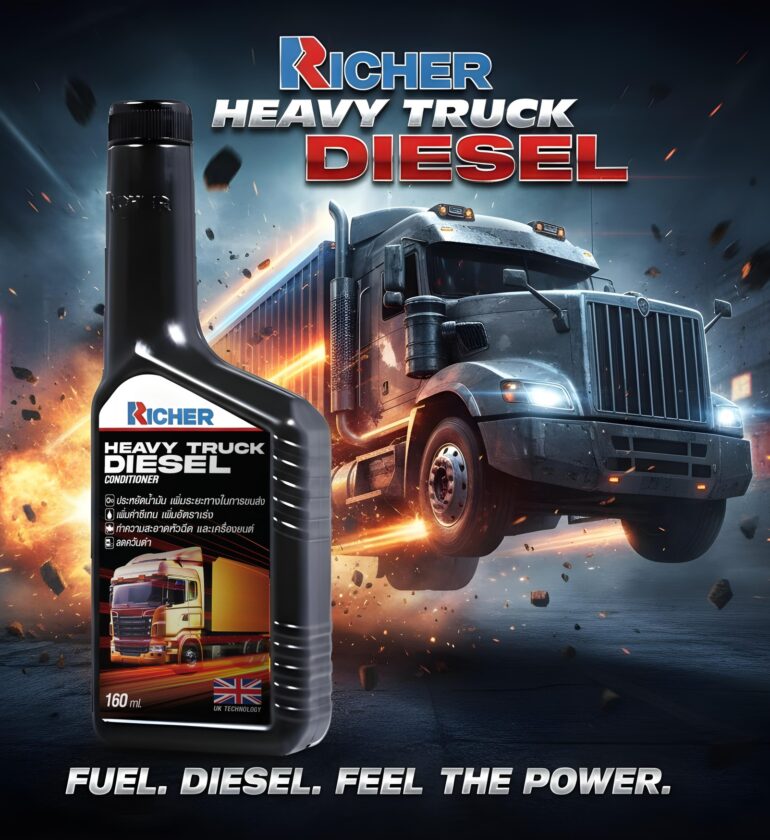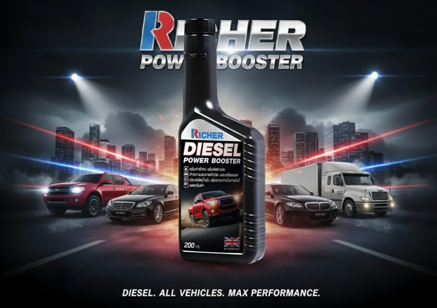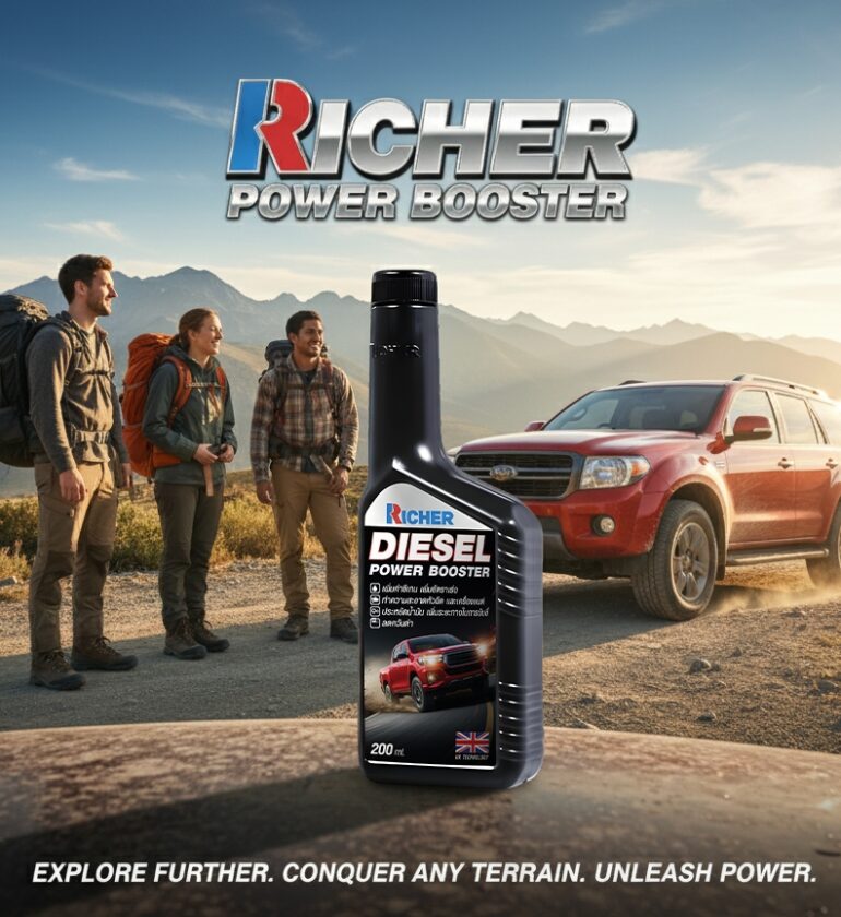 Richer Diesel Power Booster ผลิตภัณฑ์เพิ่มประสิทธิภาพสำหรับเครื่องยนต์ดีเซล ขนาด 200 ml บรรจุในขวด PET ใช้งานง่าย เหมาะสำหรับรถยนต์ดีเซลทุกประเภท